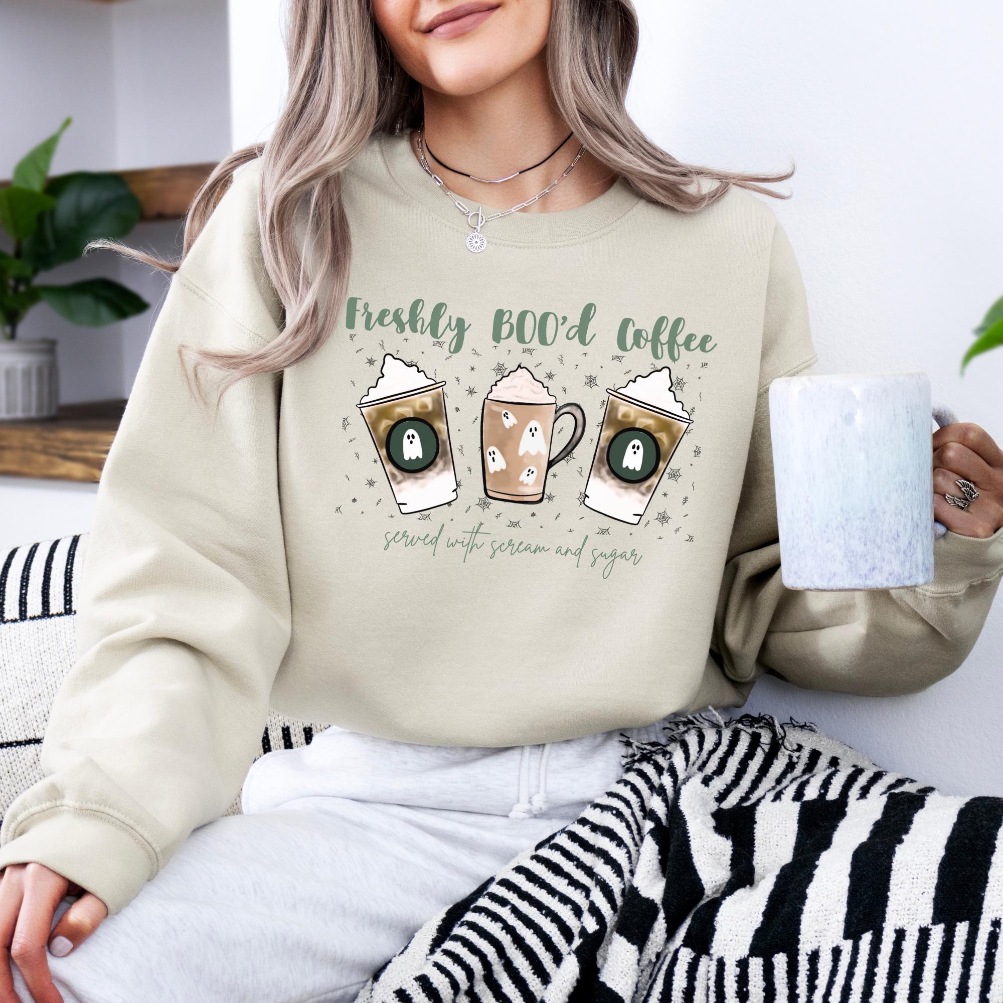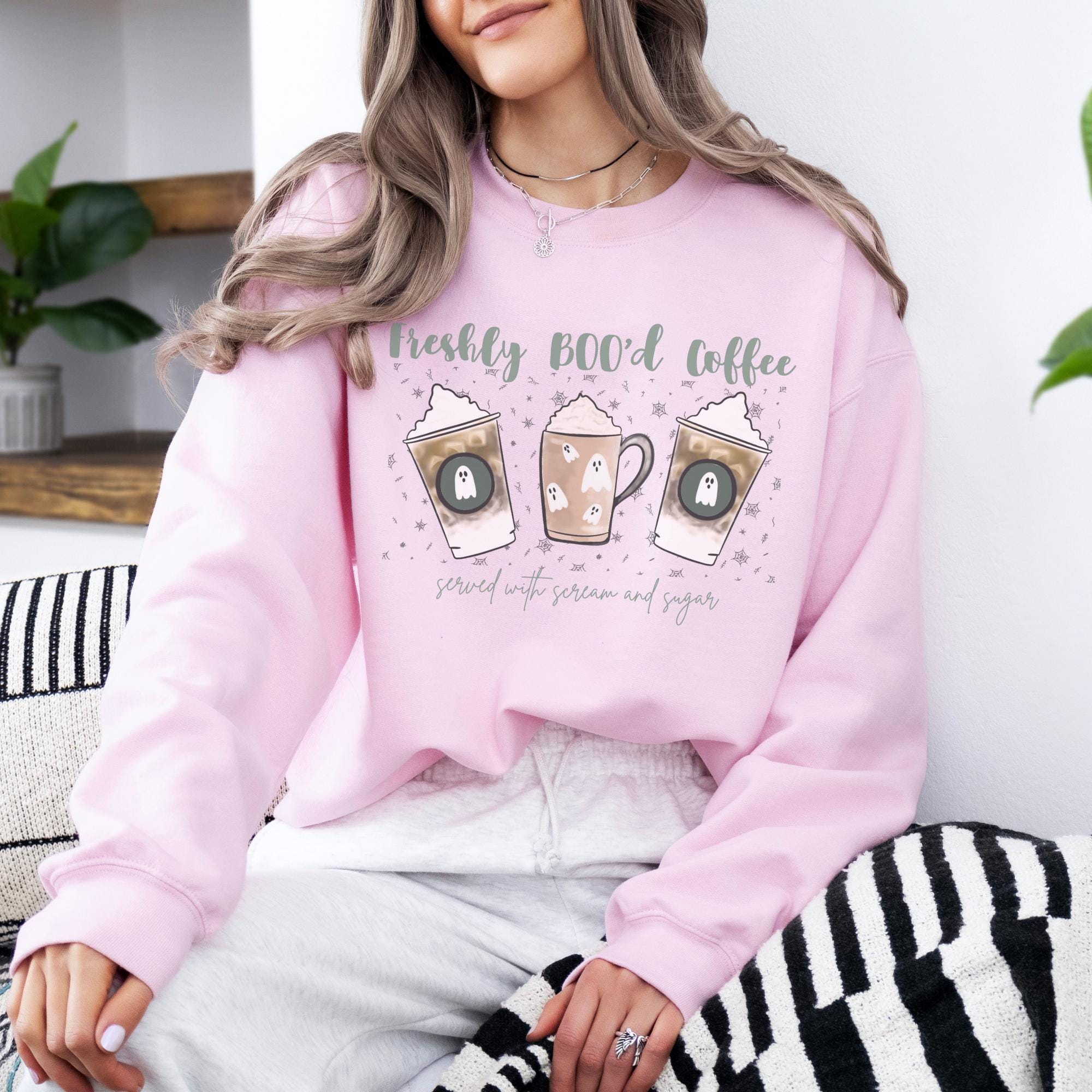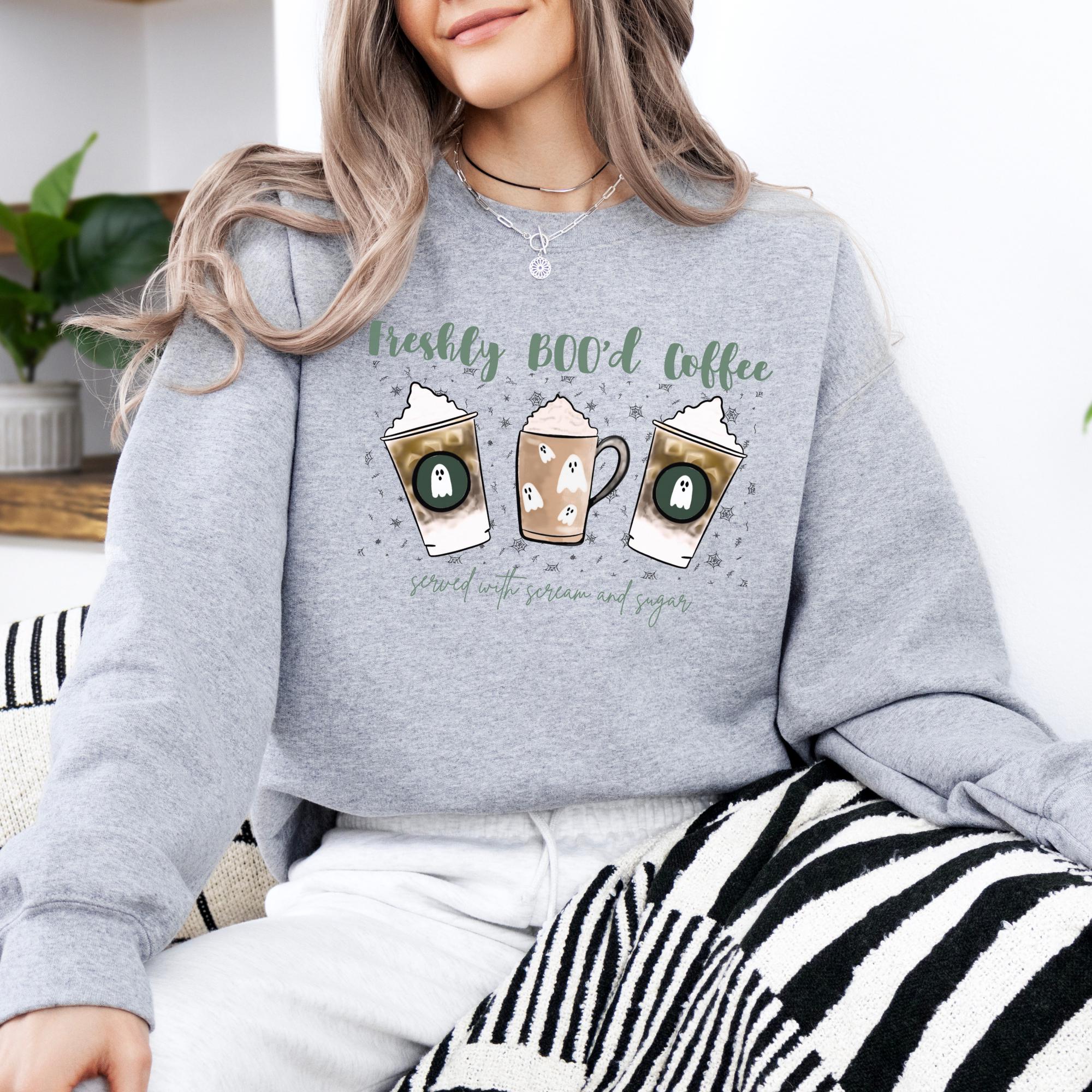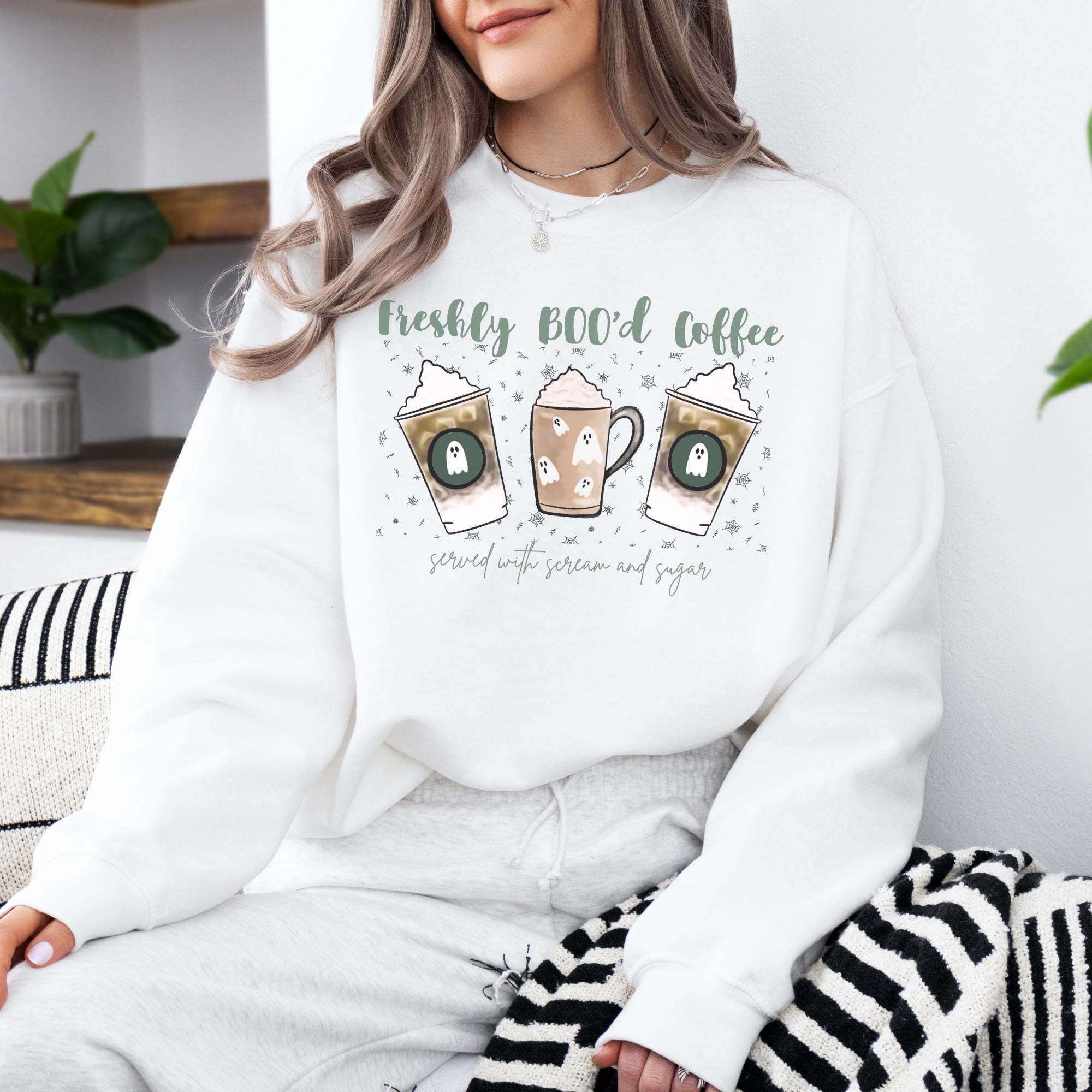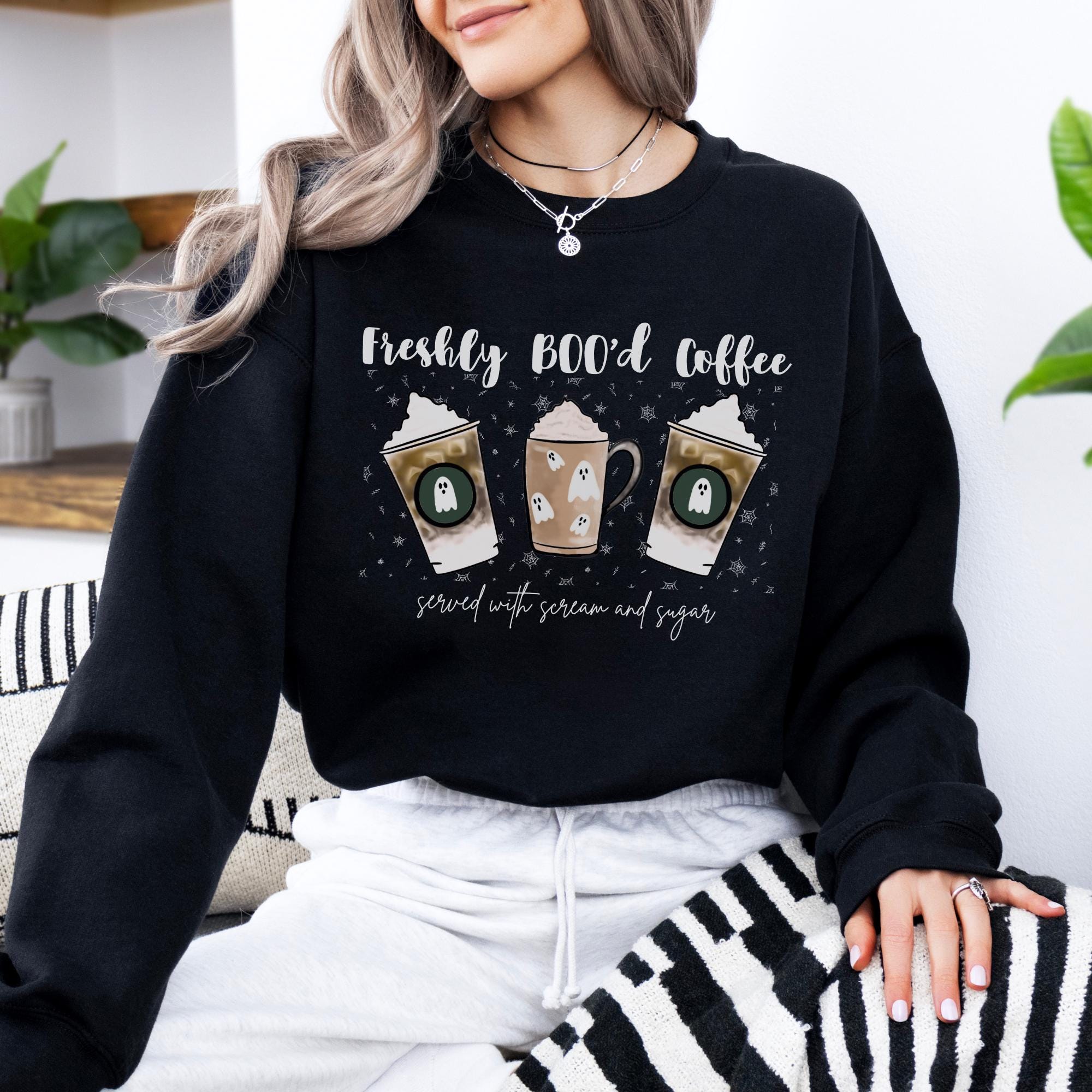 Freshly Boo’d Coffee Halloween Crewneck Sweatshirt – Cozy Fall Coffee Lover Gift