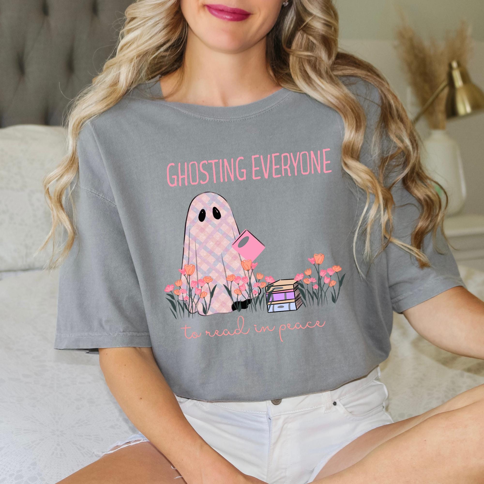 Comfort Colors Ghost Reading Book T-shirt - Girly Halloween Gift