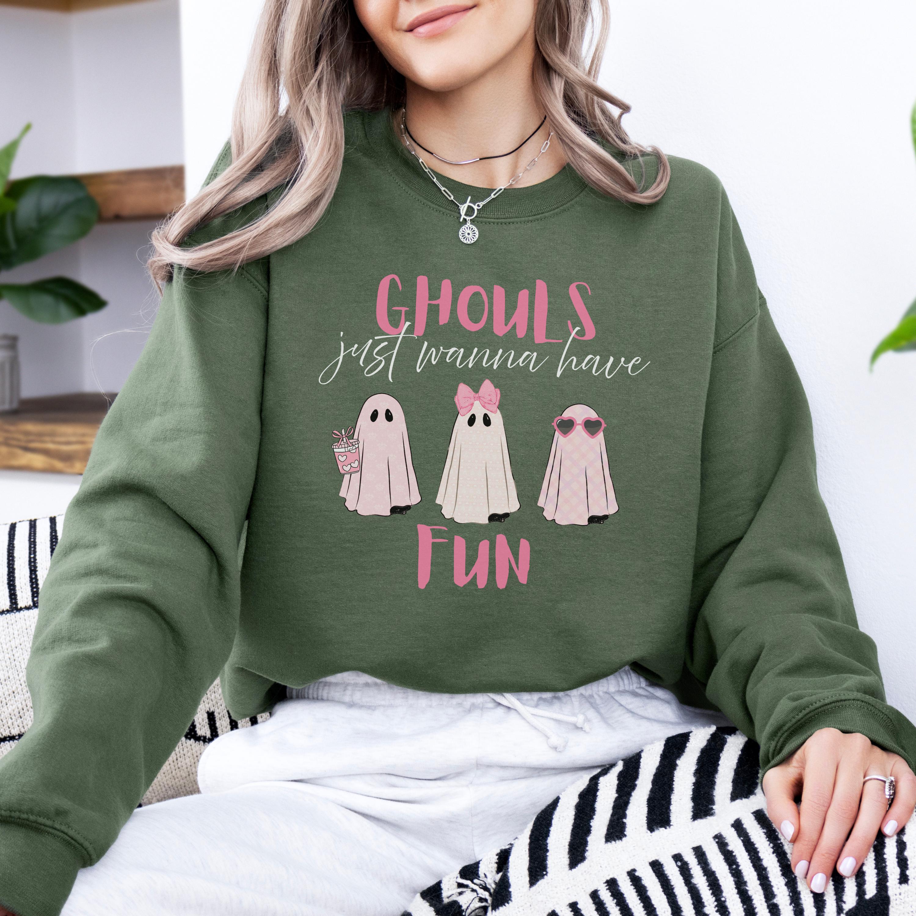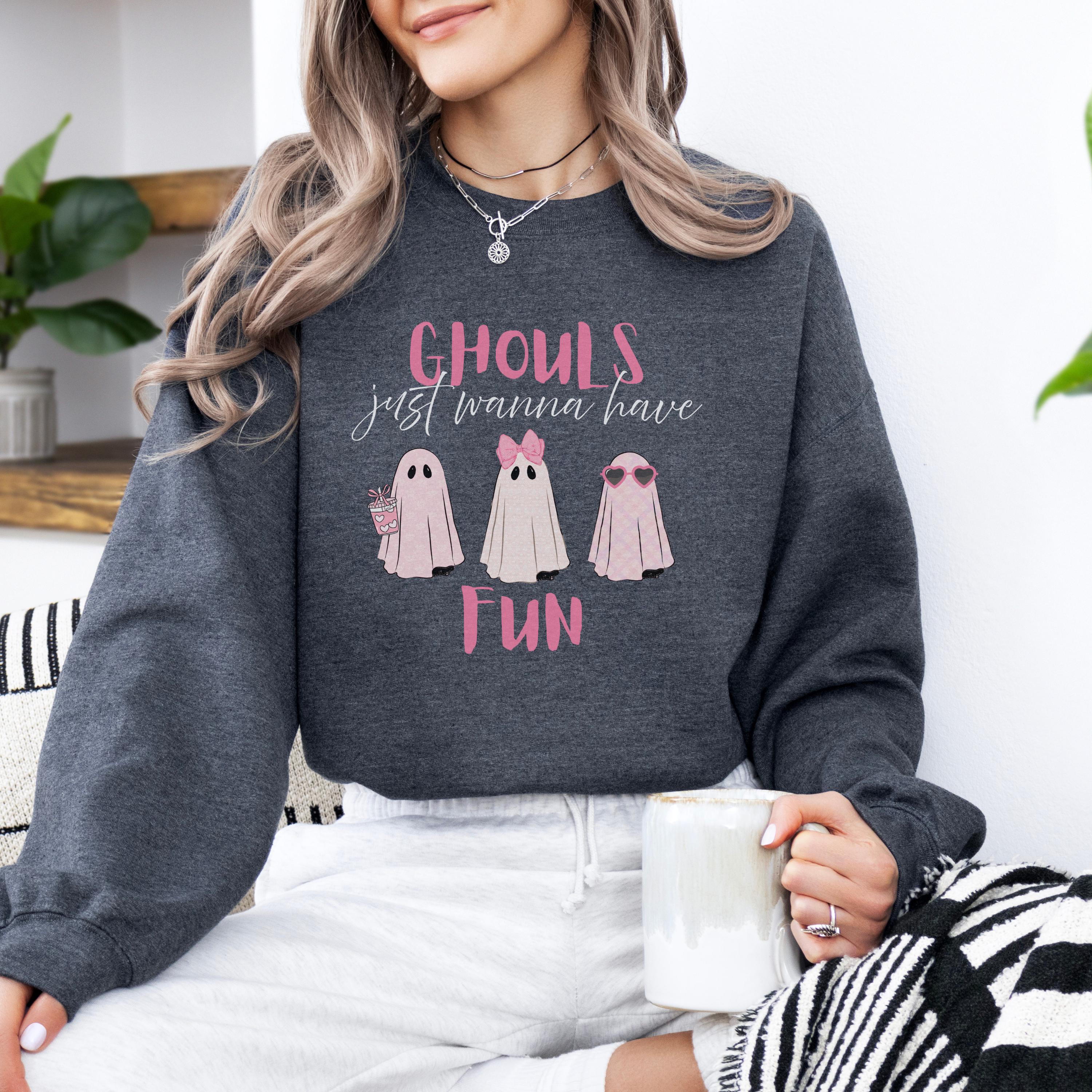 Ghouls Just Wanna Have Fun Sweatshirt | Cute Pink Ghost Halloween Crewneck