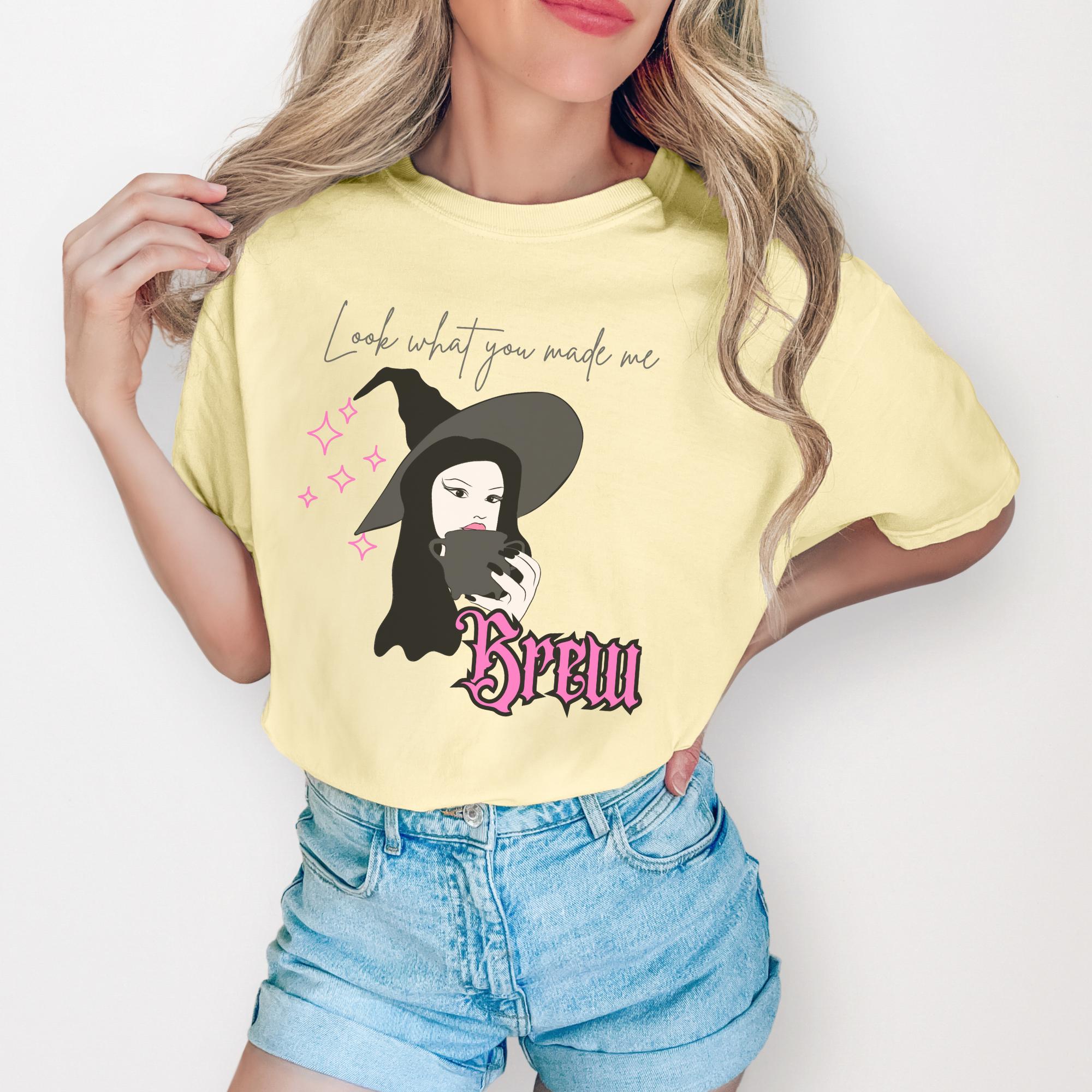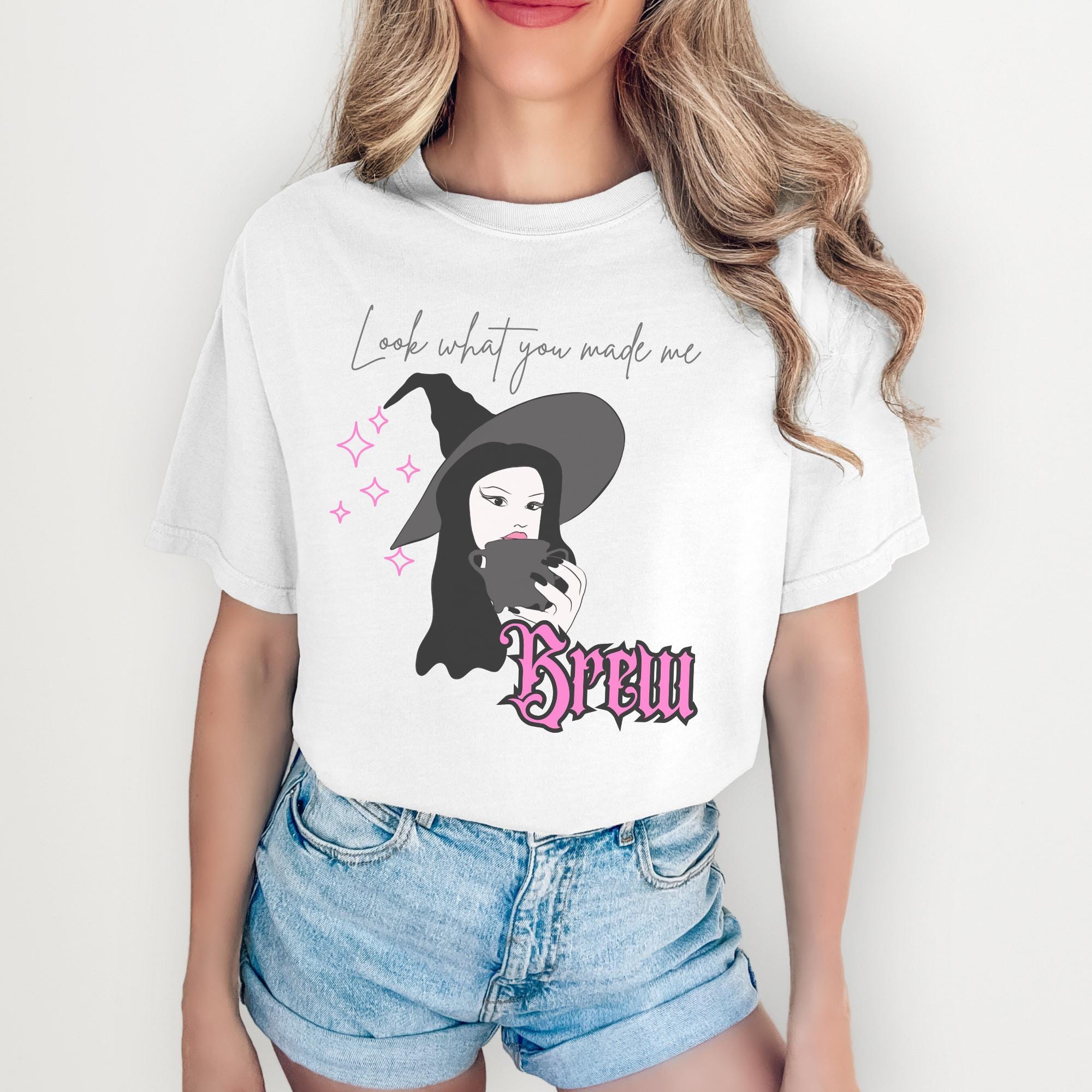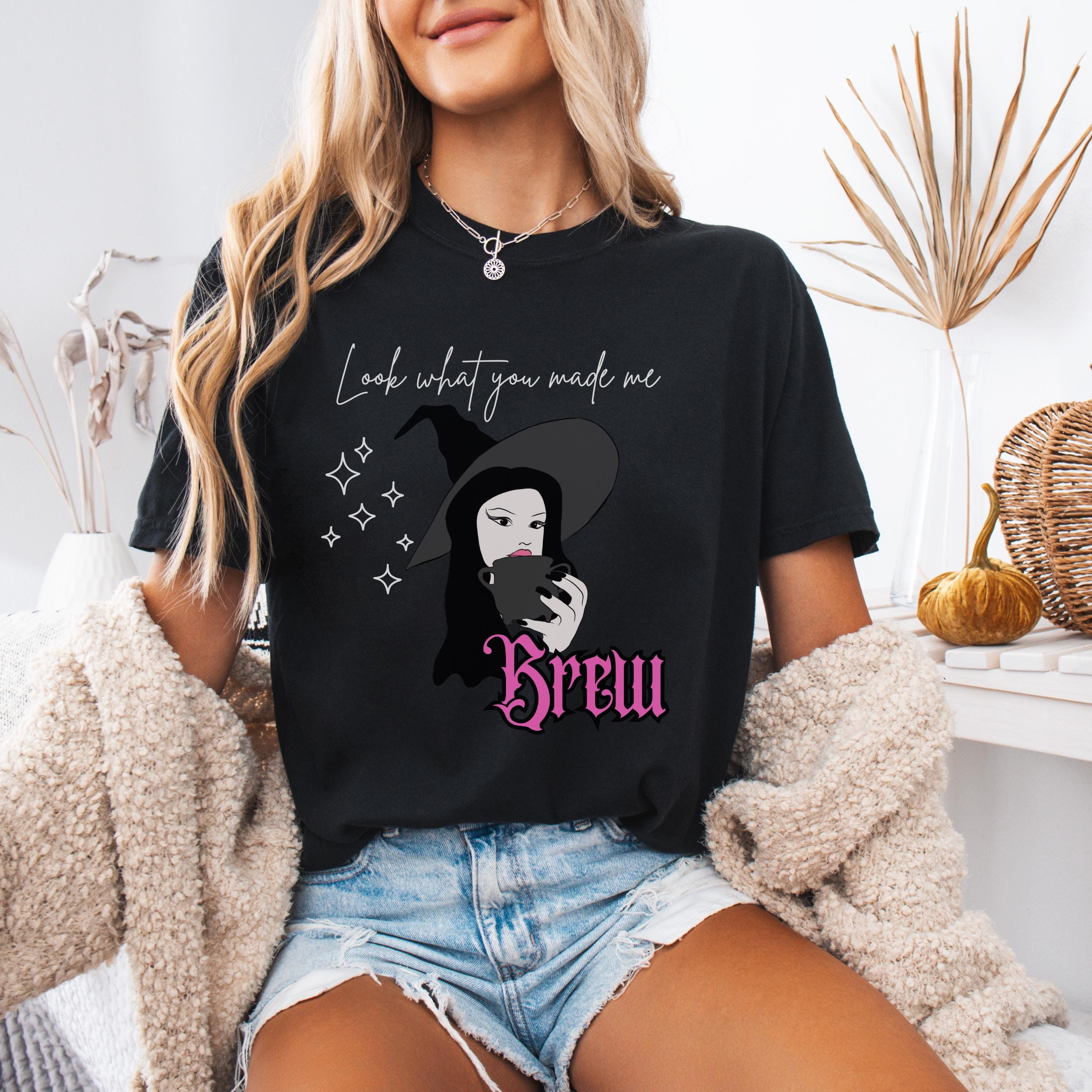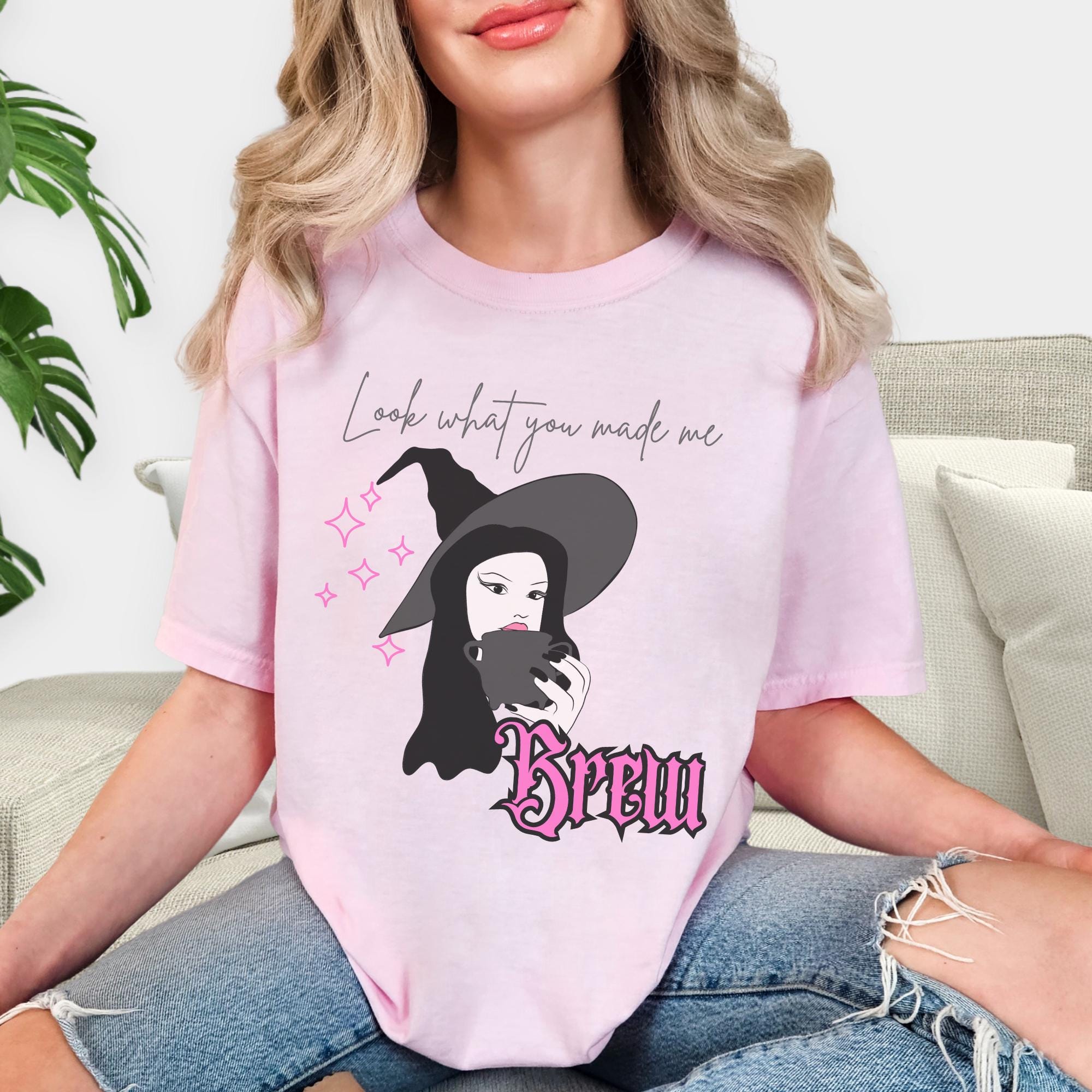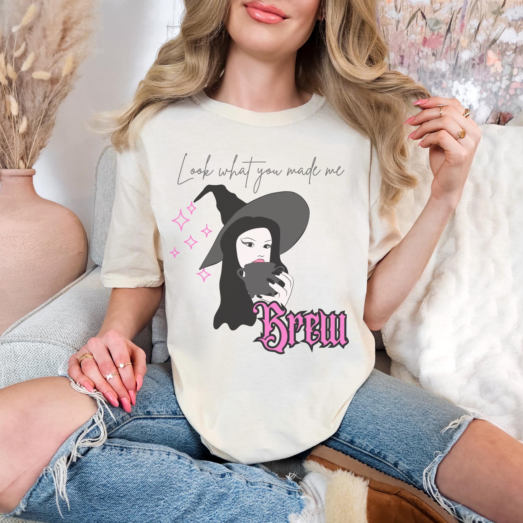 Start your spooky season in style with this Look What You Made Me Brew t-shirt! Featuring a chic witch holding her coffee (or potion ☕✨), this pastel pink tee is perfect for cozy fall vibes, Halloween festivities, or any day you need a little magic in your morning brew.