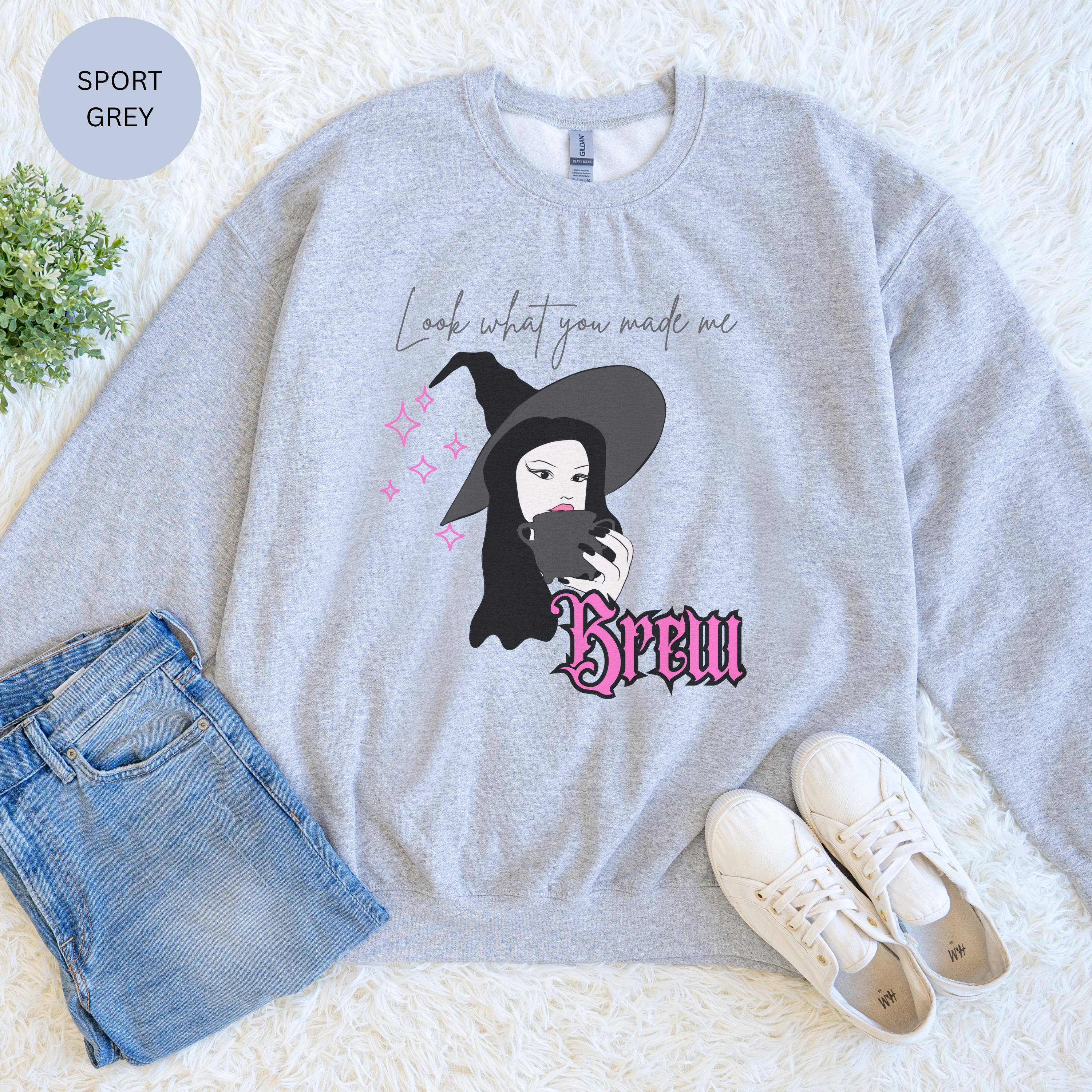 Witchy Brew Sweatshirt: Halloween Spooky Woman Crewneck