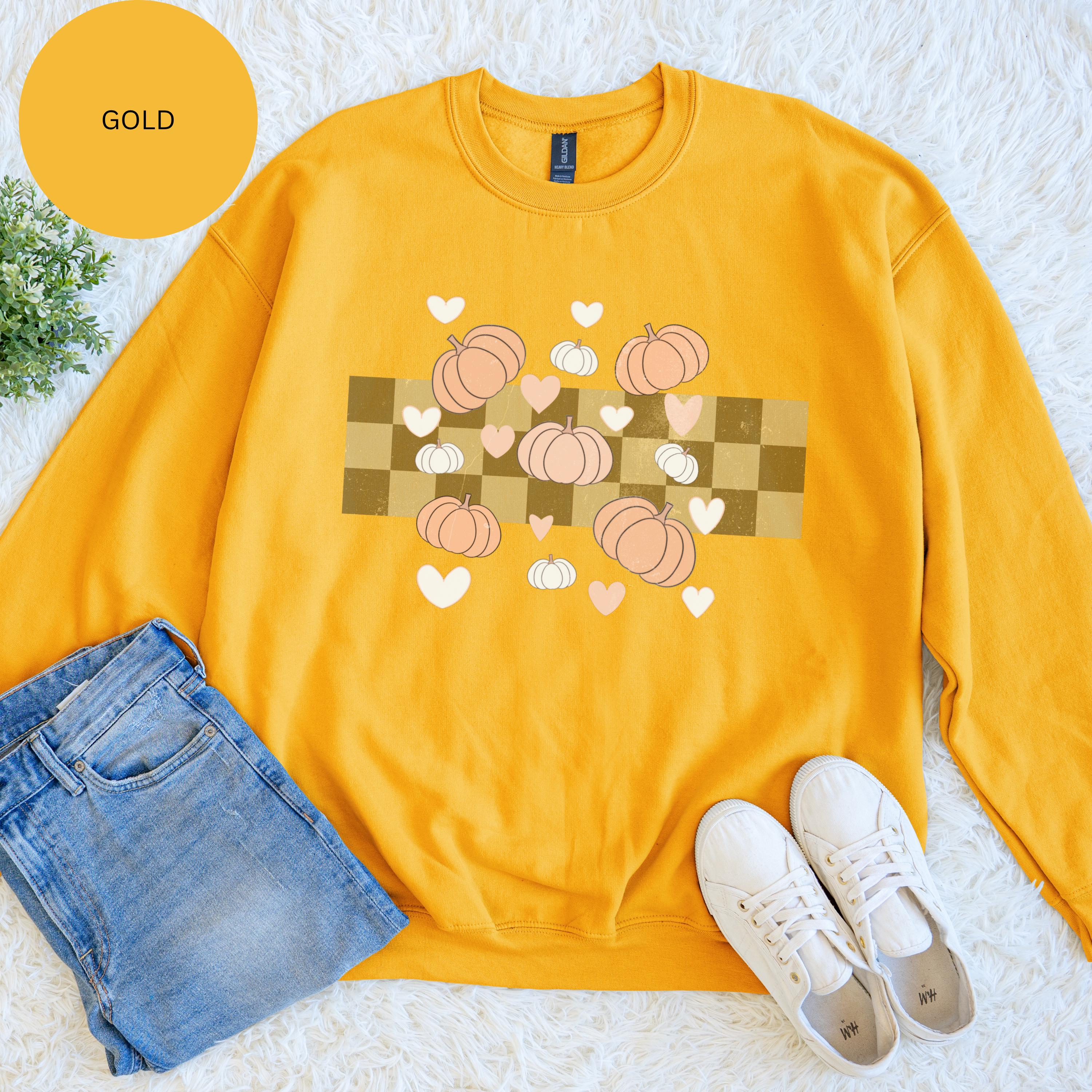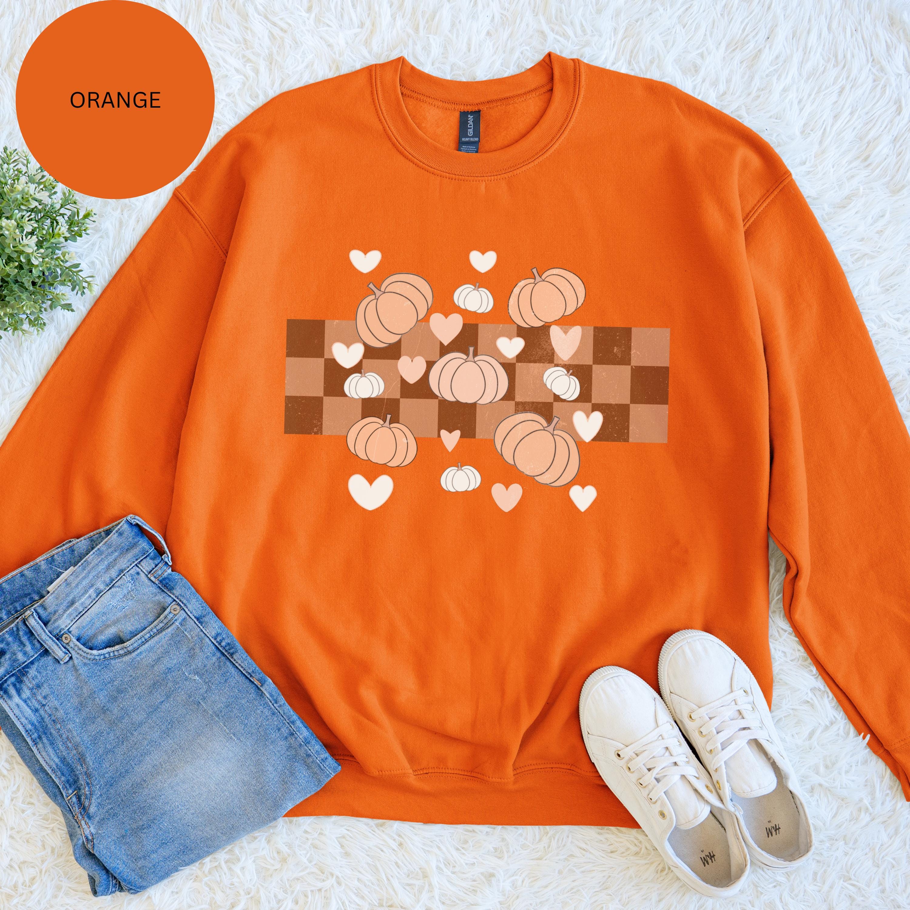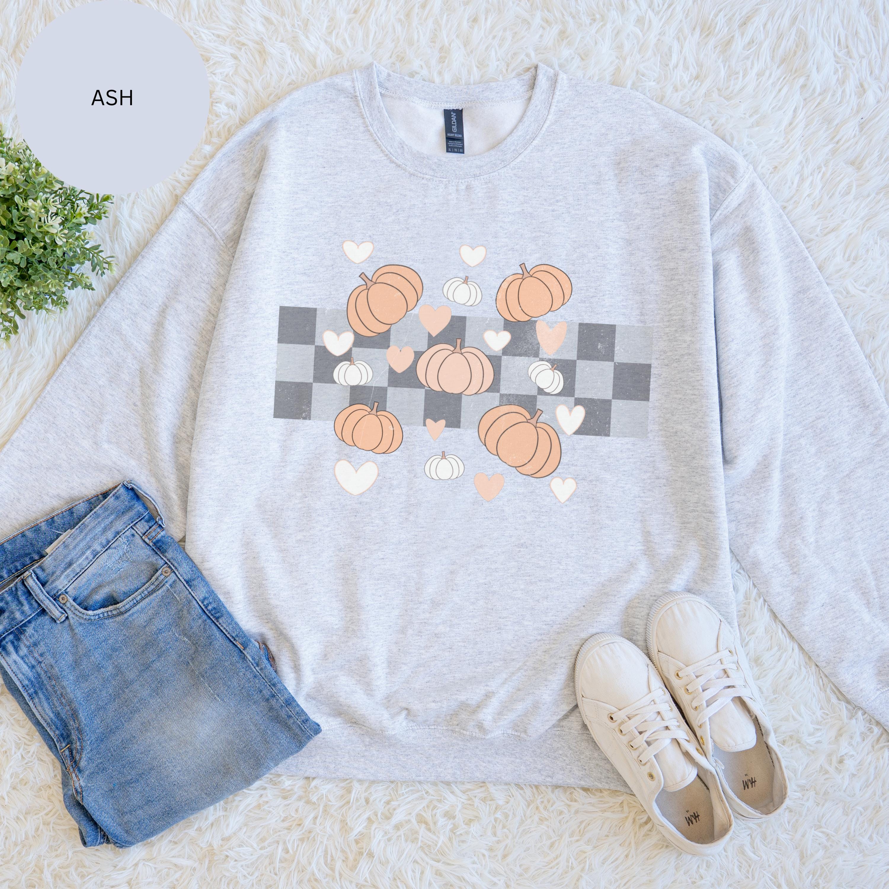 Pumpkin Plaid Heart Sweatshirt: Cozy Fall Crewneck