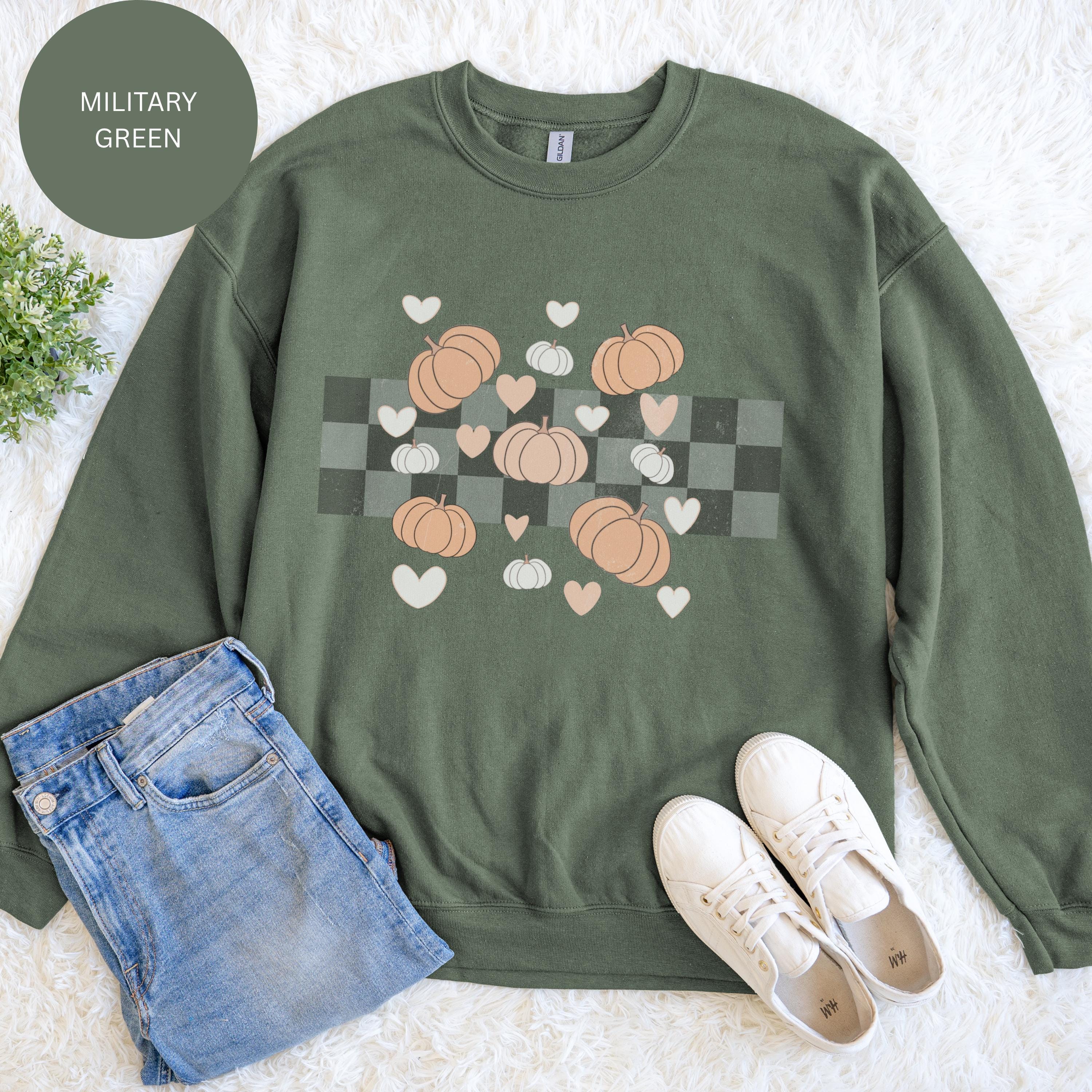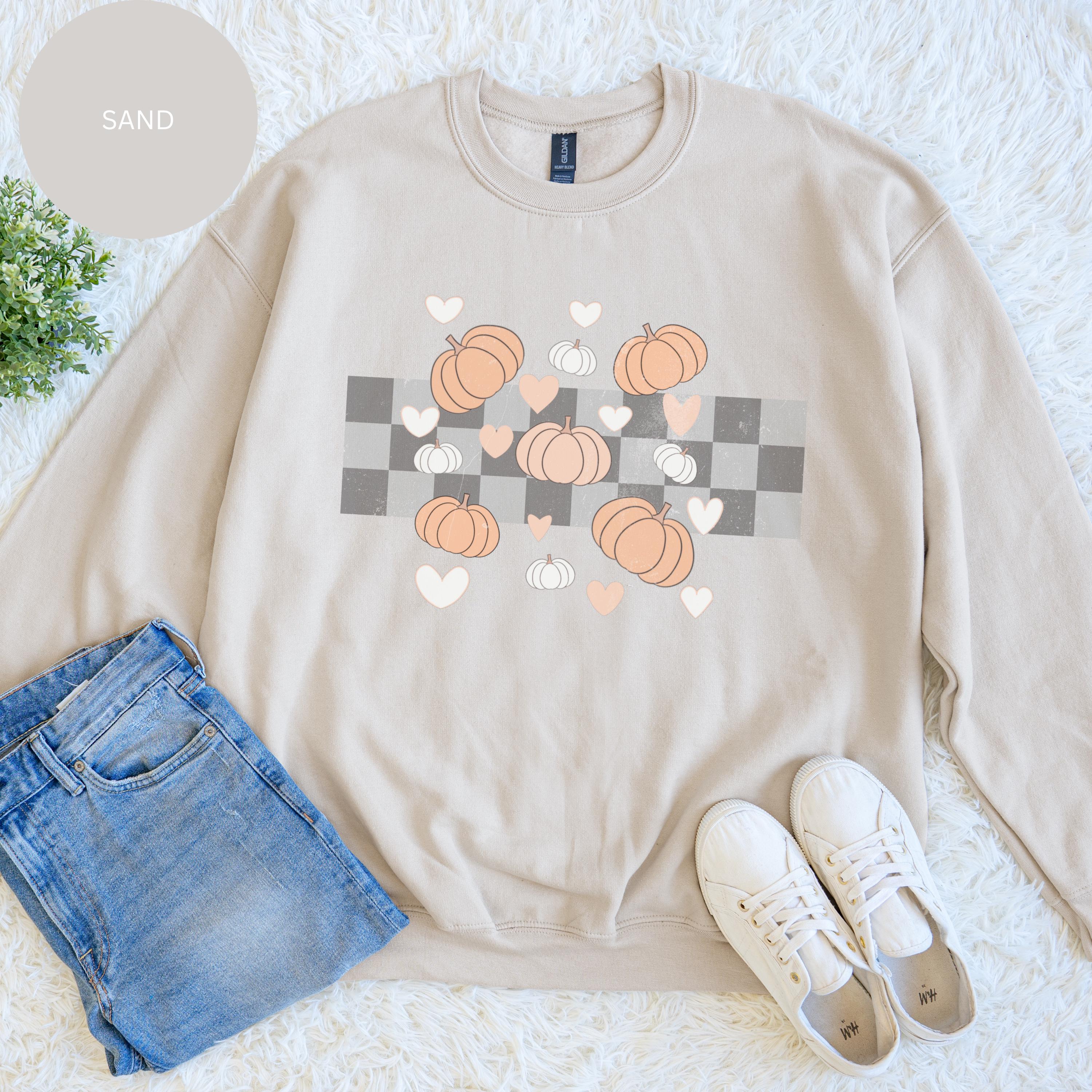 Bring rustic charm to your fall wardrobe with this Pumpkin Plaid Heart Sweatshirt! 🍁 Featuring a cozy mix of buffalo plaid, pastel pumpkins, and sweet little hearts, this sweatshirt is the perfect blend of farmhouse and fall aesthetic.