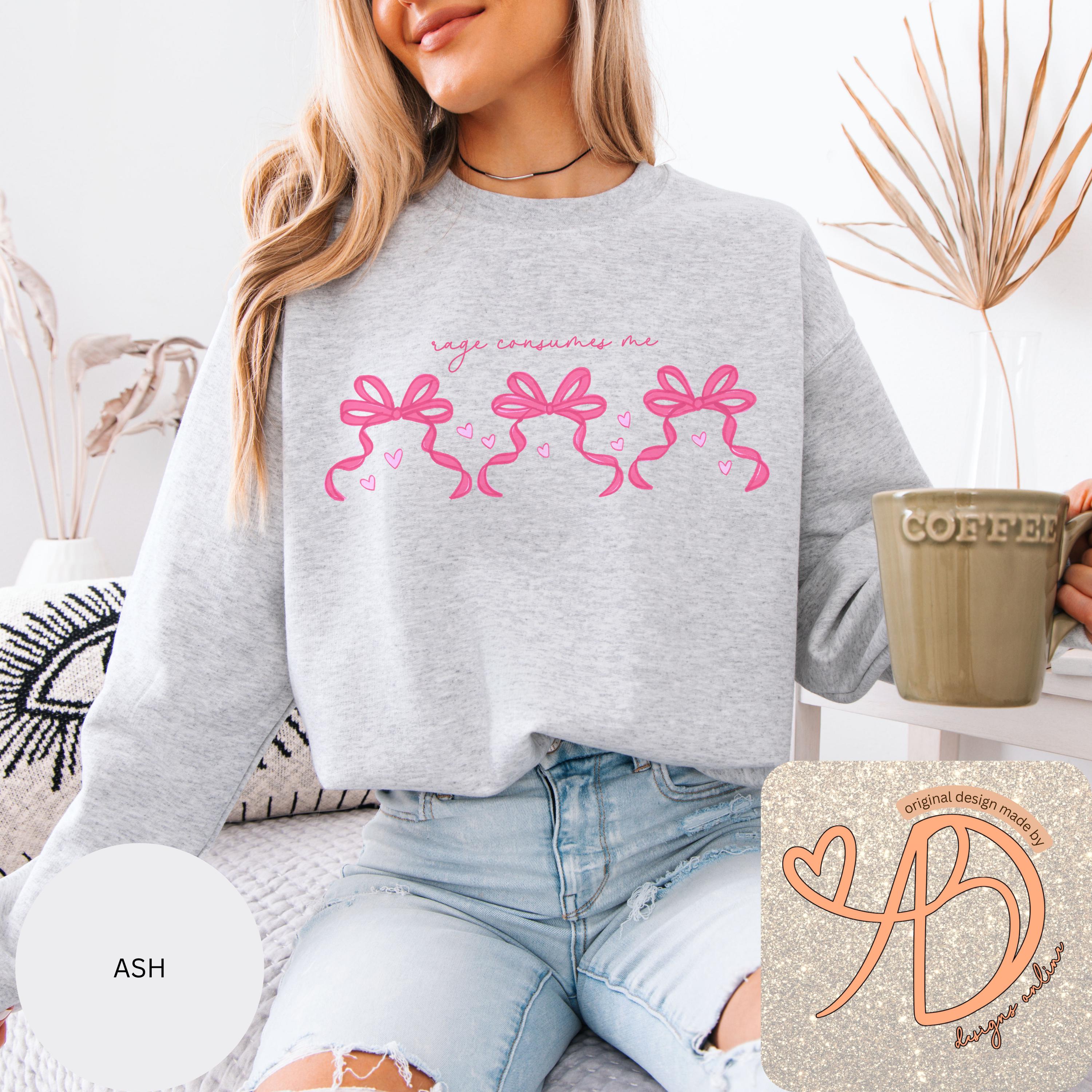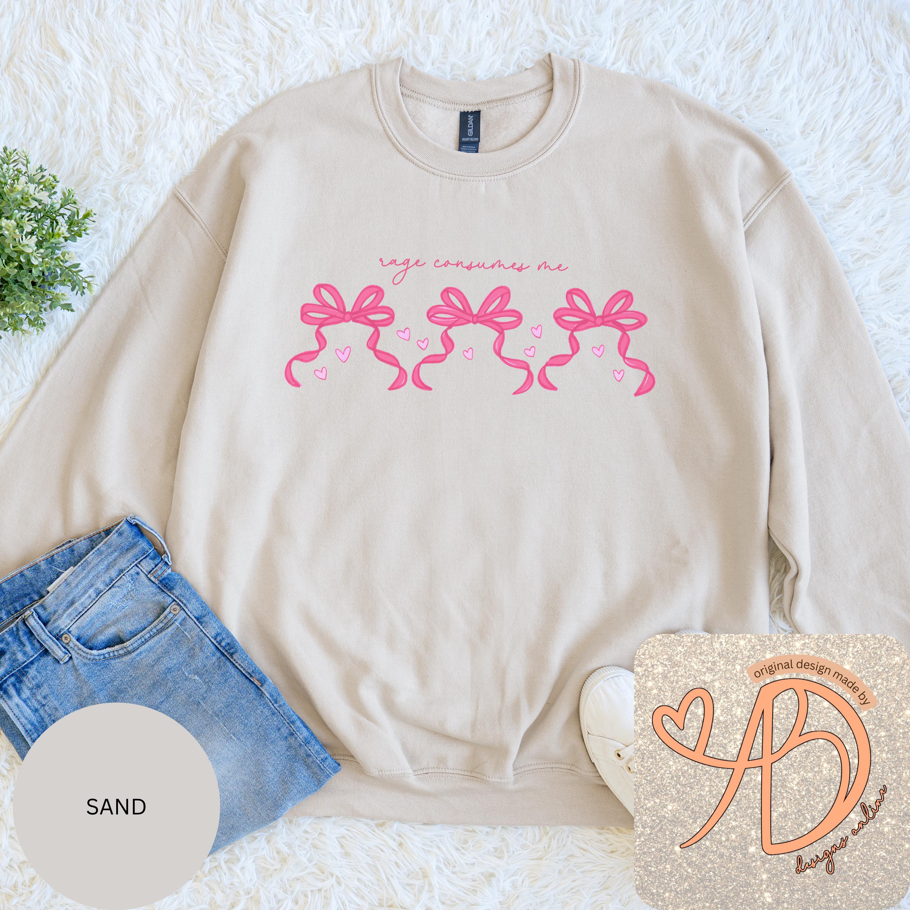 Rage Consumes Me Sweatshirt | Cute Coquette Bow Crewneck | Pink Aesthetic Sweater | Feminine Rage Gift| Christmas Gift