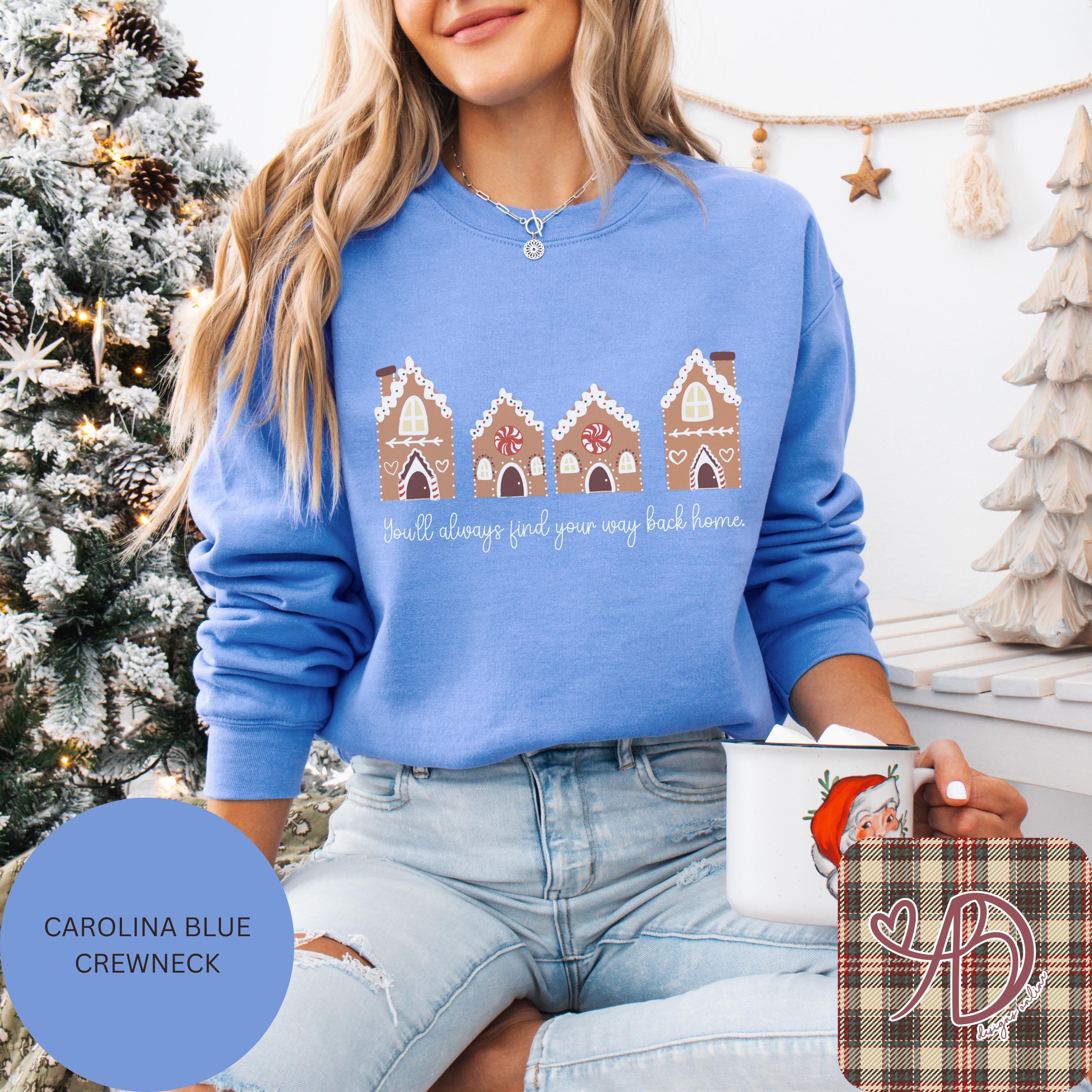 Wrap yourself in holiday warmth with this “You’ll Always Find Your Way Back Home” tee or crewneck — featuring a hand-drawn row of gingerbread houses sprinkled with winter magic. Perfect for Christmas movie nights, baking cookies, or sipping cocoa by the tree. 🍪✨