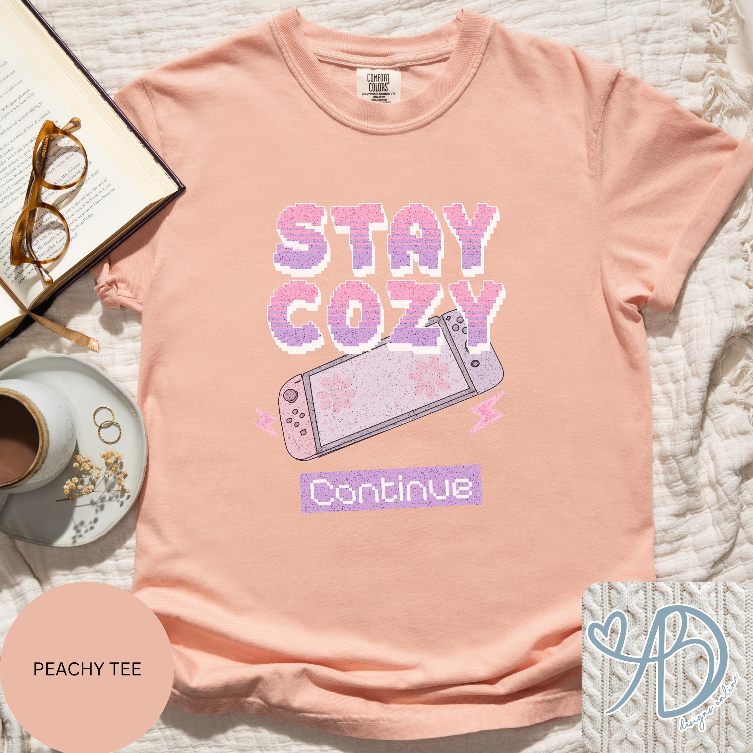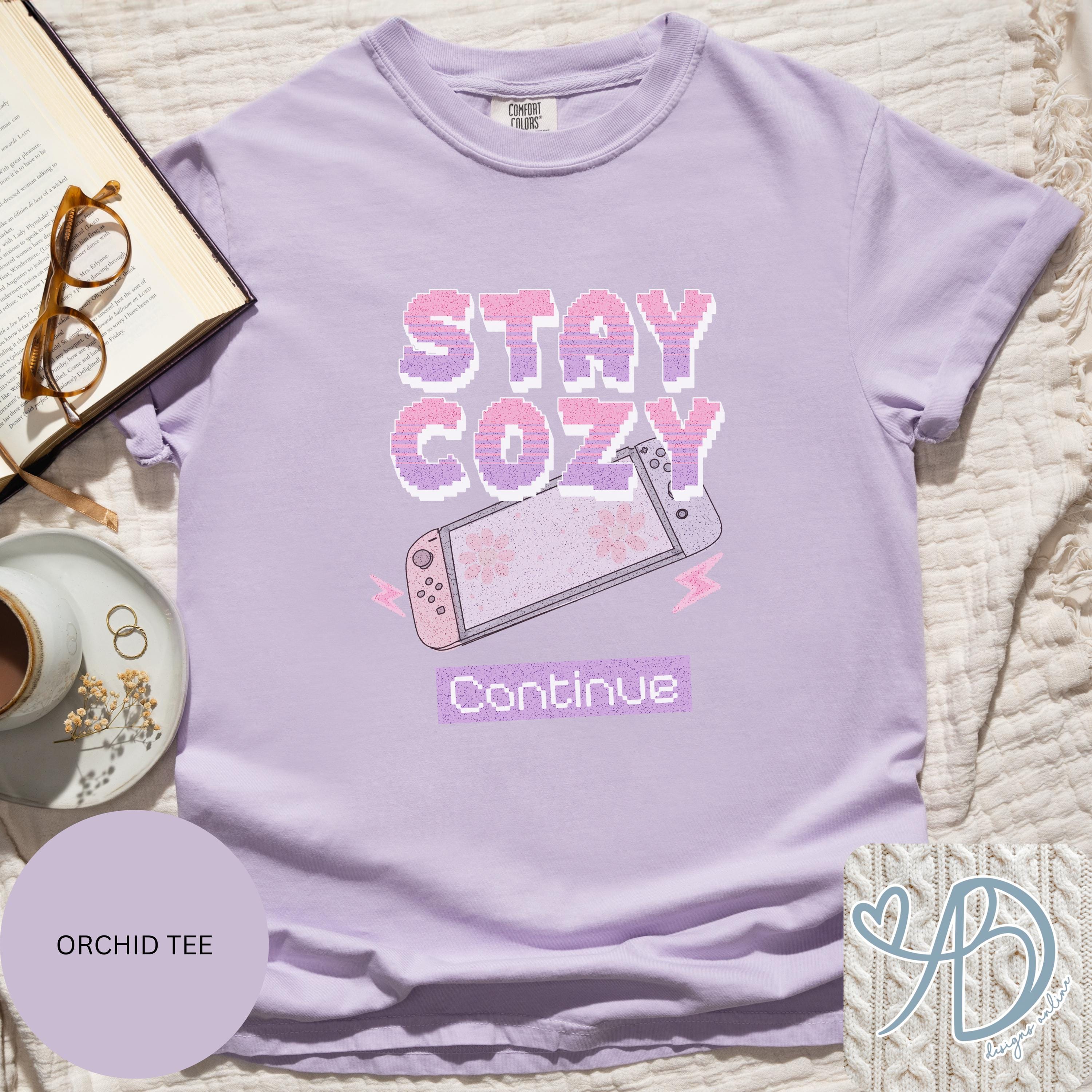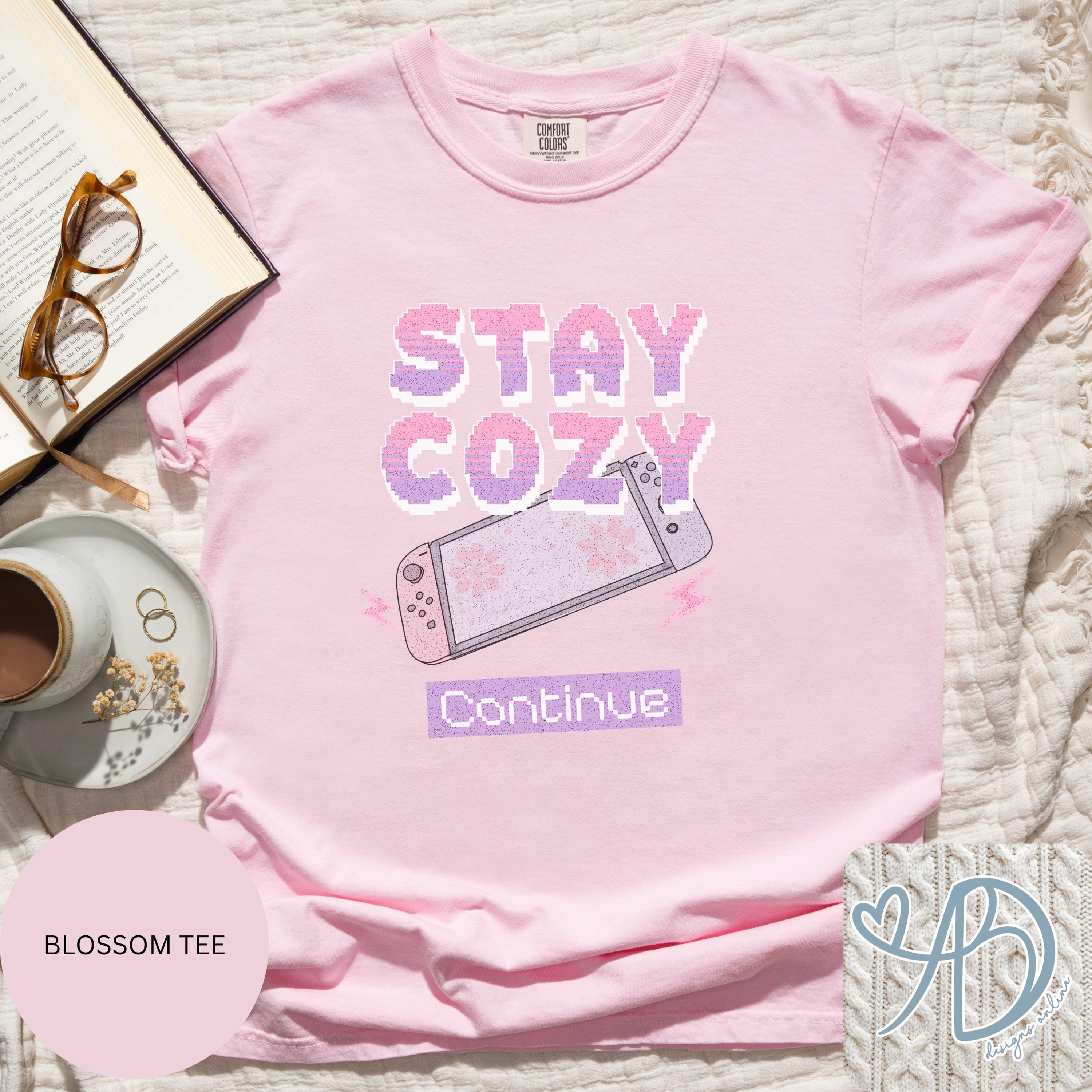 This hand-drawn design is made for cozy gamers, homebodies, and anyone who’d rather stay in and enjoy their favorite game in comfort. Featuring soft pastel tones and a nostalgic gaming vibe, Stay Cozy – Continue is the perfect mix of comfy and cute.
