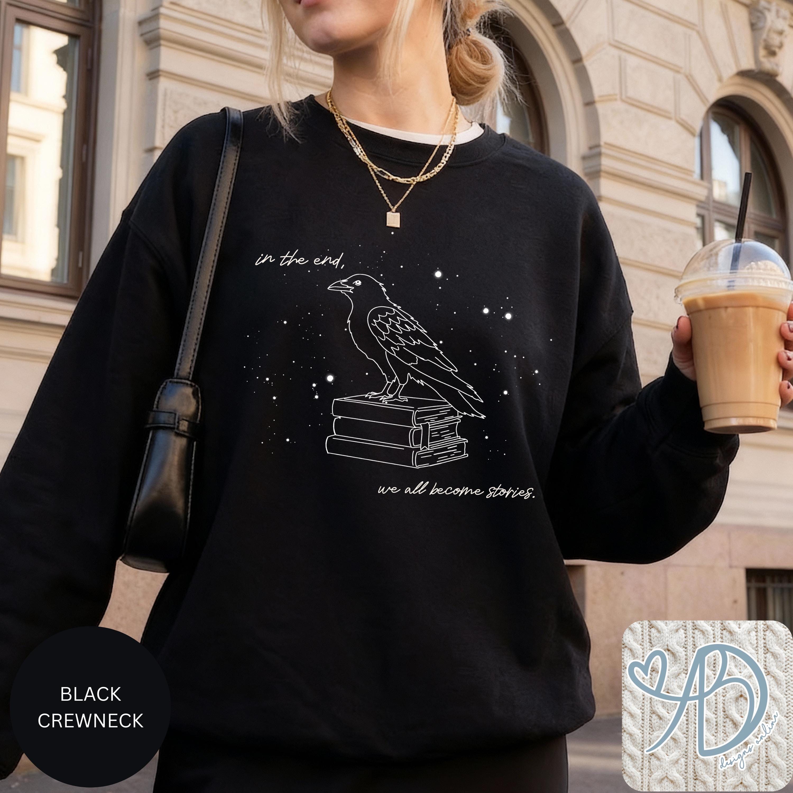 Literary Quote Sweatshirt, Book Lover Apparel, Raven & Books Art, Dark Academia Style, Cozy Reader Gift