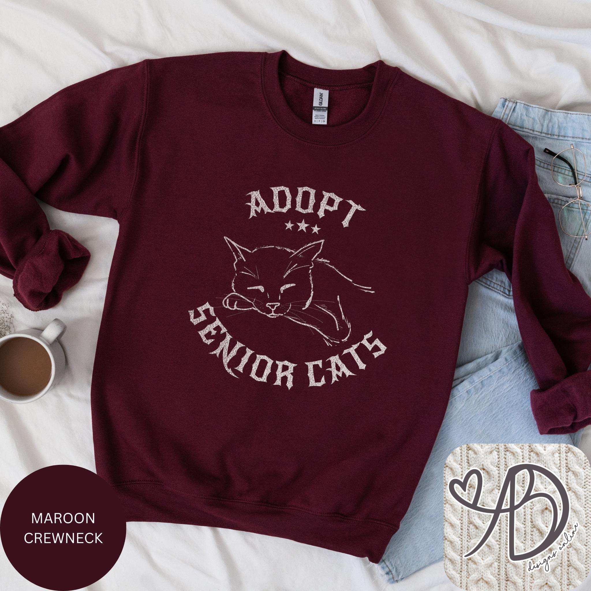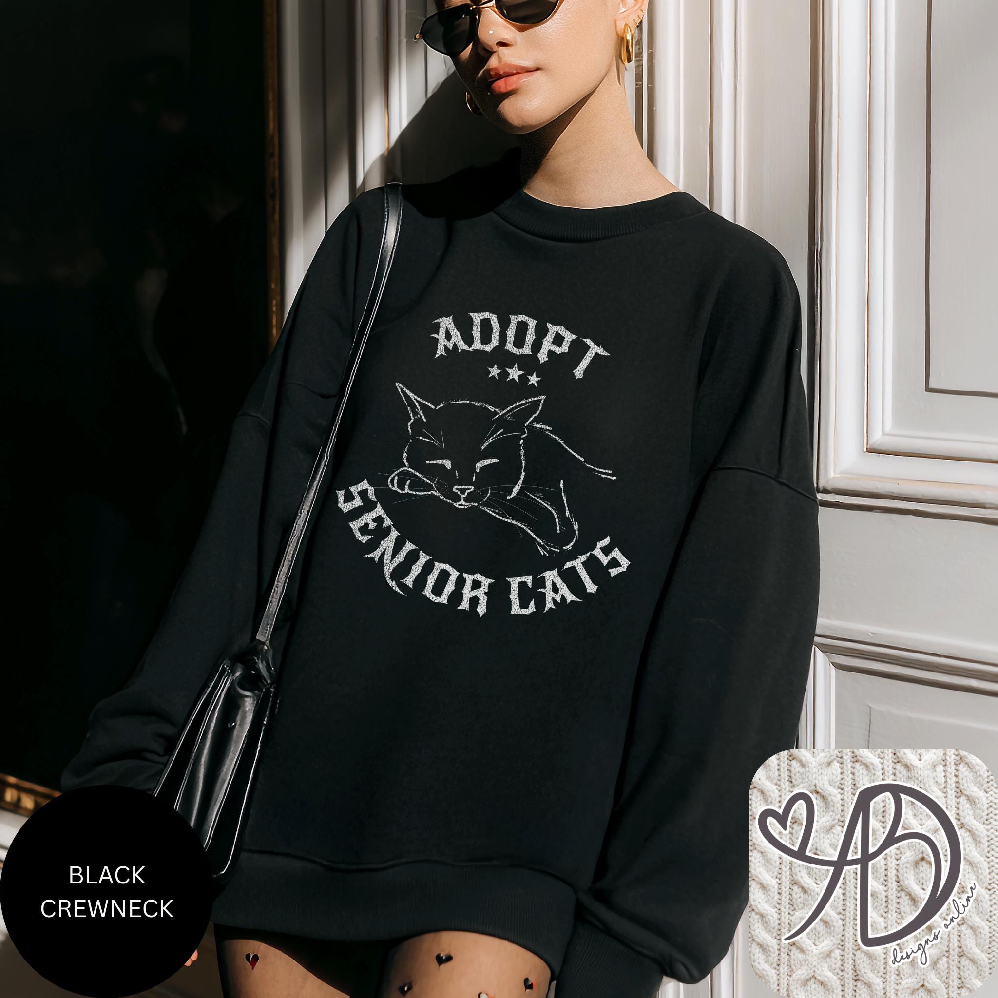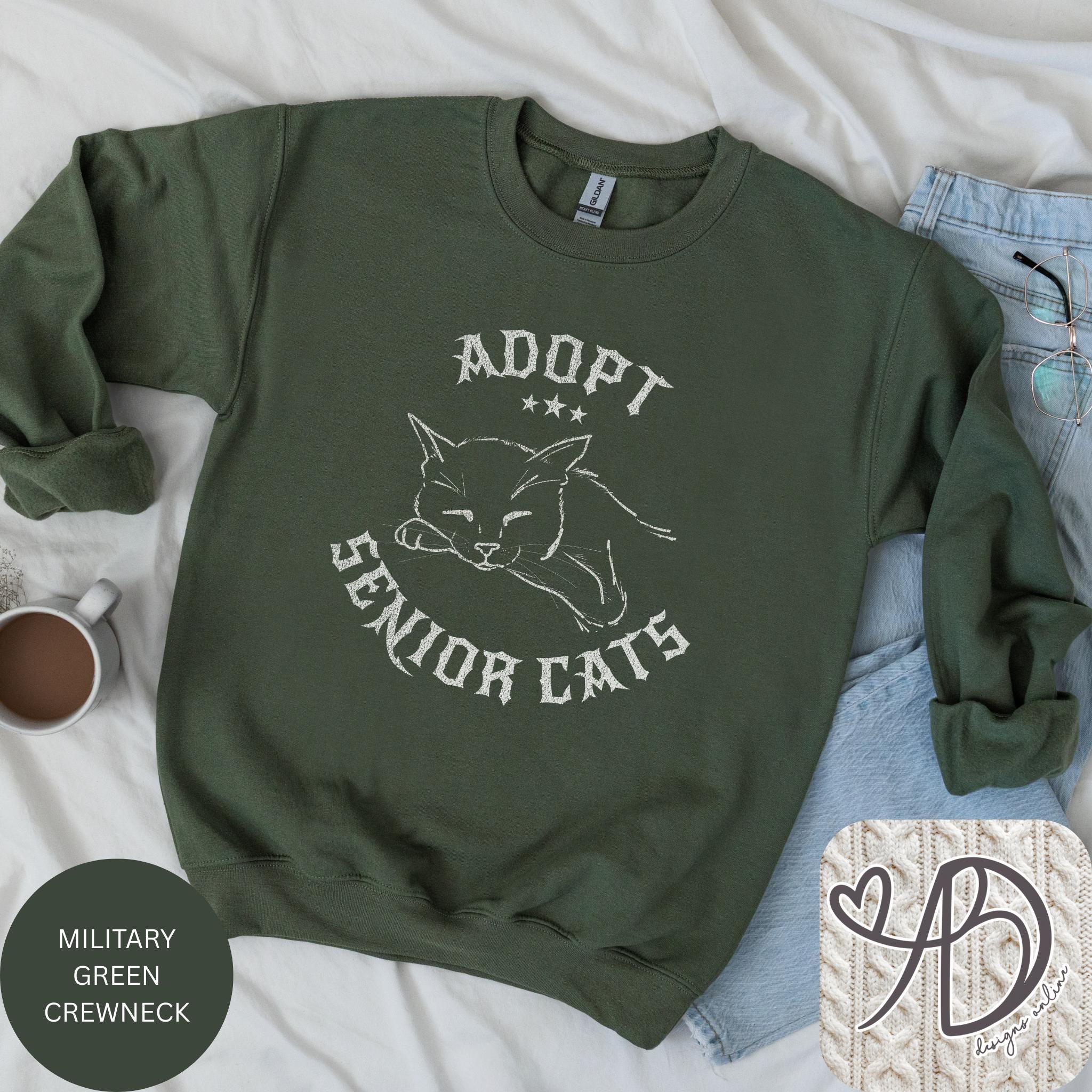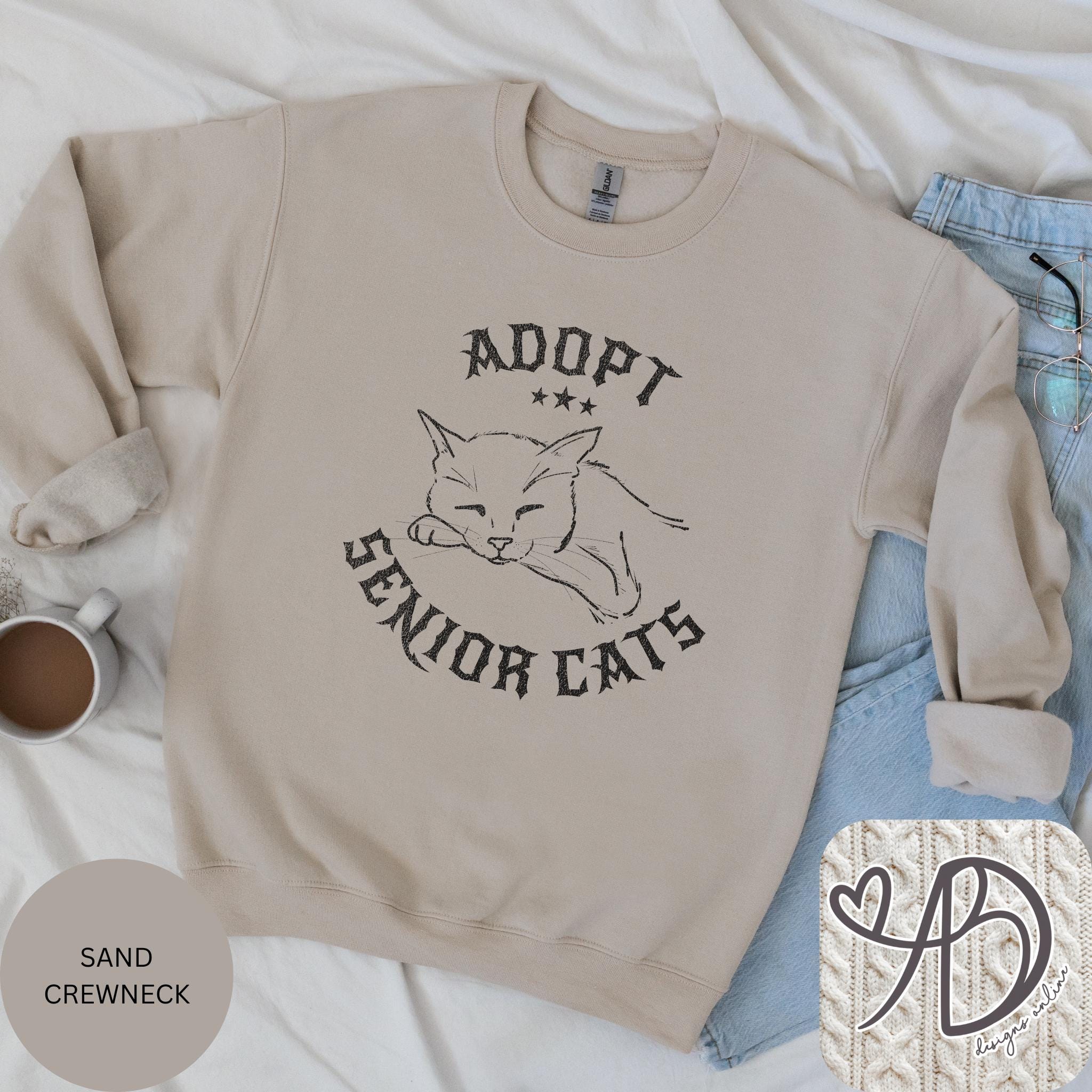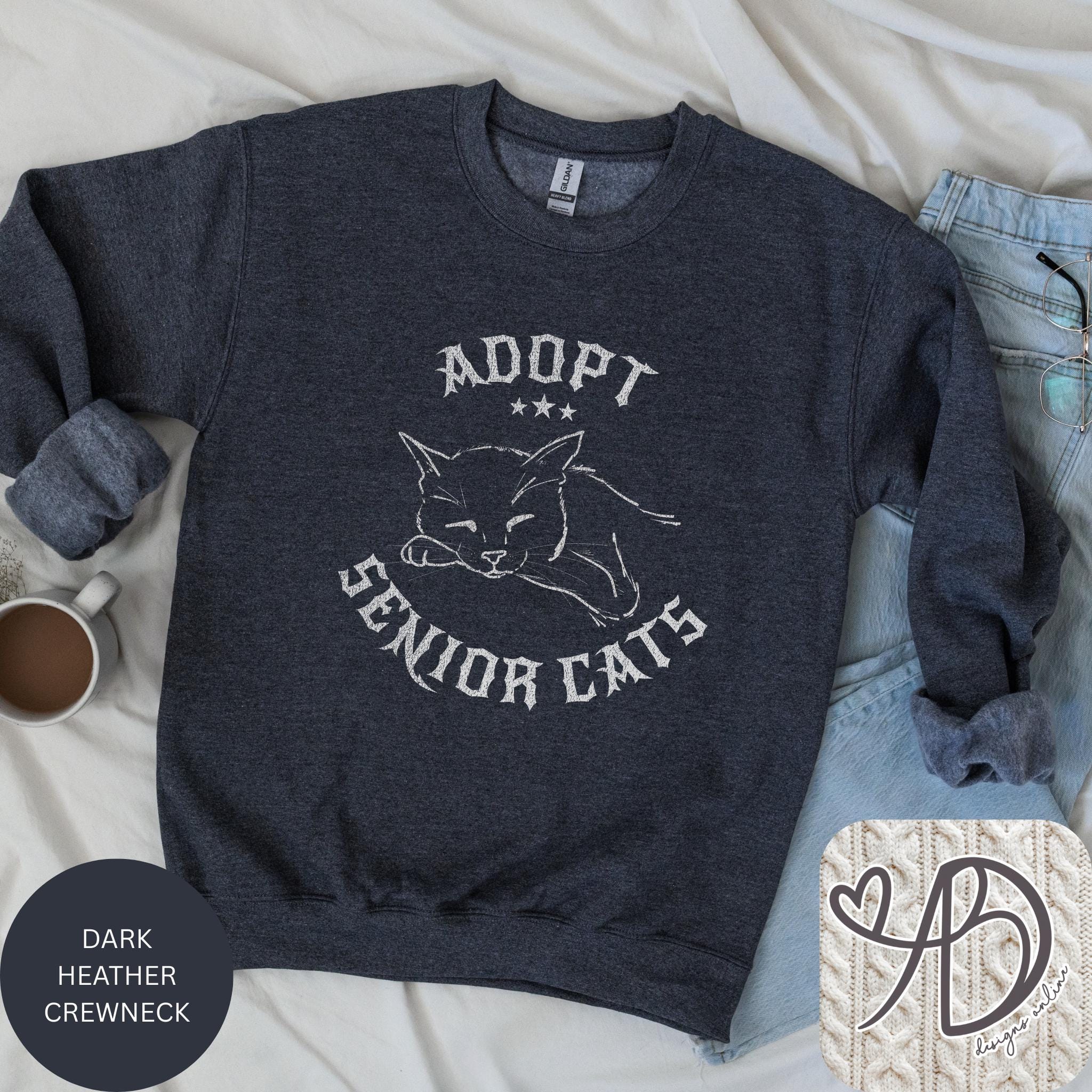 There’s something quietly powerful about senior cats — soft, wise, and full of love. This “Adopt Senior Cats” sweatshirt features a hand-drawn sleeping cat illustration with a vintage gothic feel, perfect for cozy days, rescue advocates, and cat lovers who prefer a darker aesthetic.
